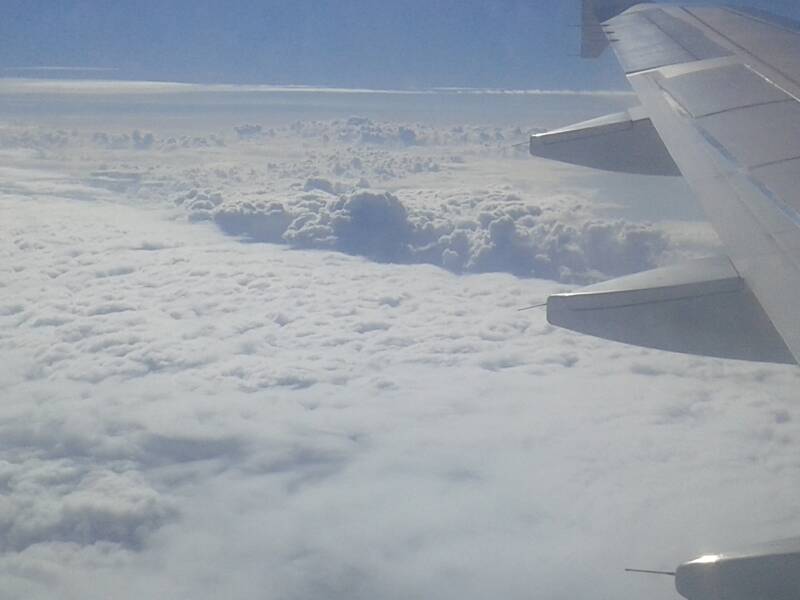 Op deze hoogtes laat je de lage bewolking achter je. Hier kijk je op die deken van lage bewolking.