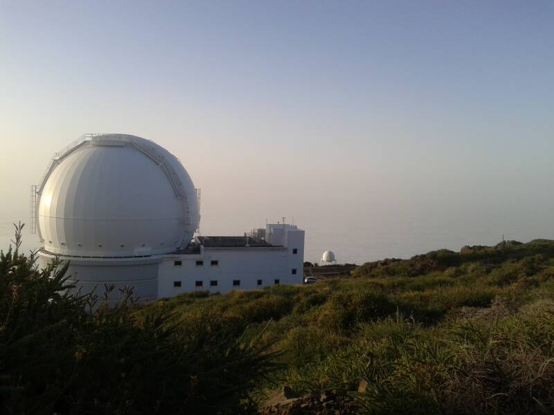 De grote koepel rechts is de Engelse William Herschel Telescope met een spiegeldiameter van 4,2 meter.