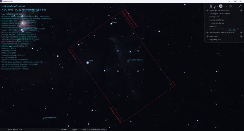 NGC 1909, Heksenkopnevel. (reflectienevel) in Eridanus. En Apenkop, Kwalnevel en M35. 26 op 27 december 2025, Lattrop