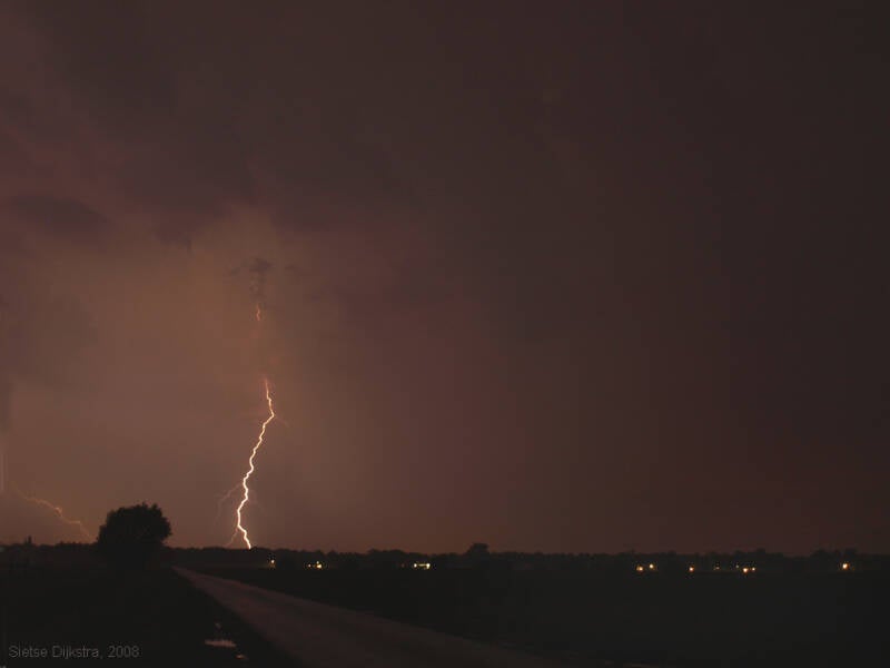 In de nacht van 2 op 3 juni 2008 trok er een heel actief onweersgebied over het oosten van Nederland. Deze opnamen gemaakt met de Olympus E510 zijn gemaakt Tussen Almelo en Vriezenveen. Eigenlijk behoren deze opnamen tot één van de eerste echt gelukte reeks foto´s met veel CG´s! Dat betekent Cloud- Ground bliksems. Dus inslagen.