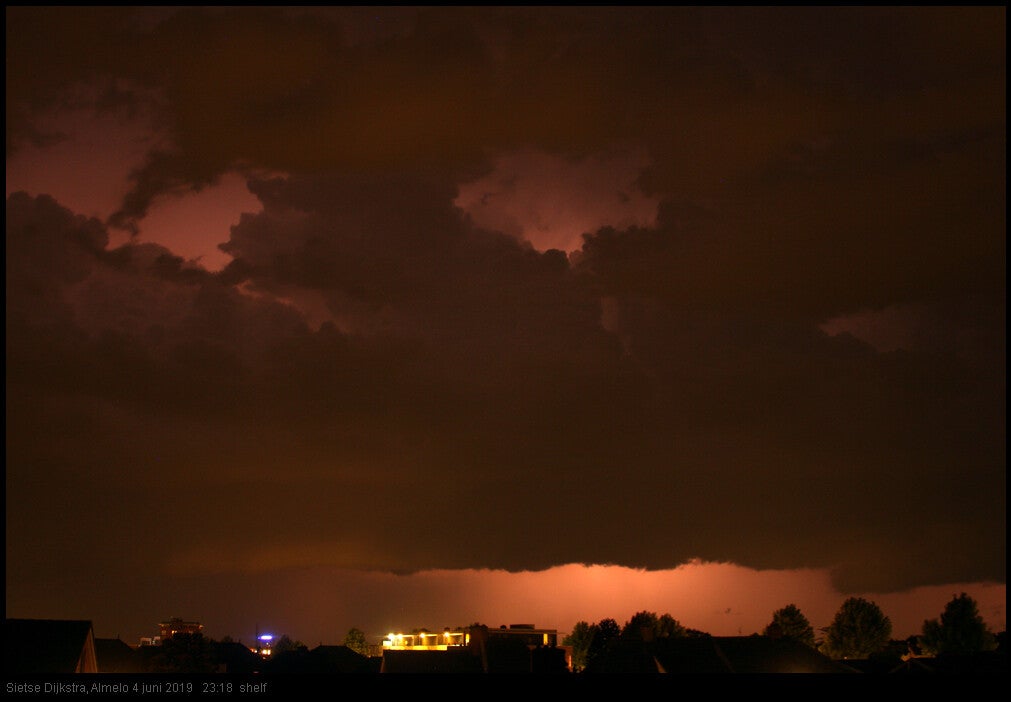 Onweer en verzwakt overtrekkende shelfcloud 4 op 5 juni 2019 Almelo